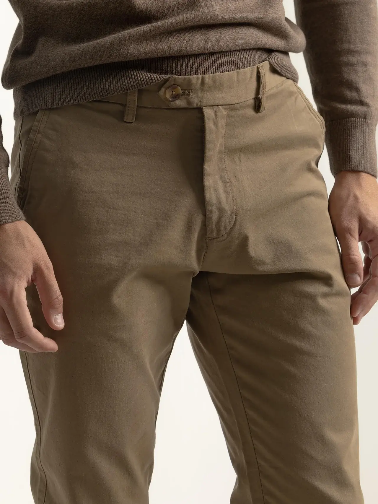Pantalón chino con bolsillos laterales funcionales y cierre clásico.