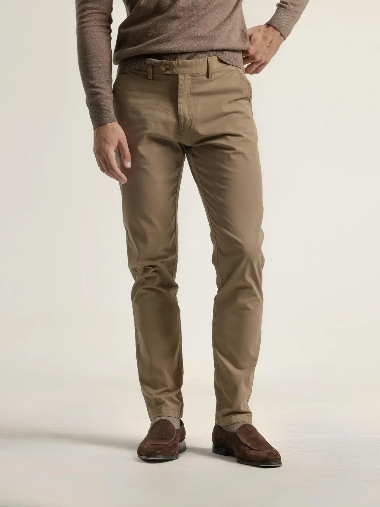 El pantalon chino twill tostado combina confort y elegancia en una prenda esencial para cualquier armario masculino. Su tejido de sarga suave y resistente ofrece un ajuste perfecto, ideal tanto para looks casuales como para estilos más formales.