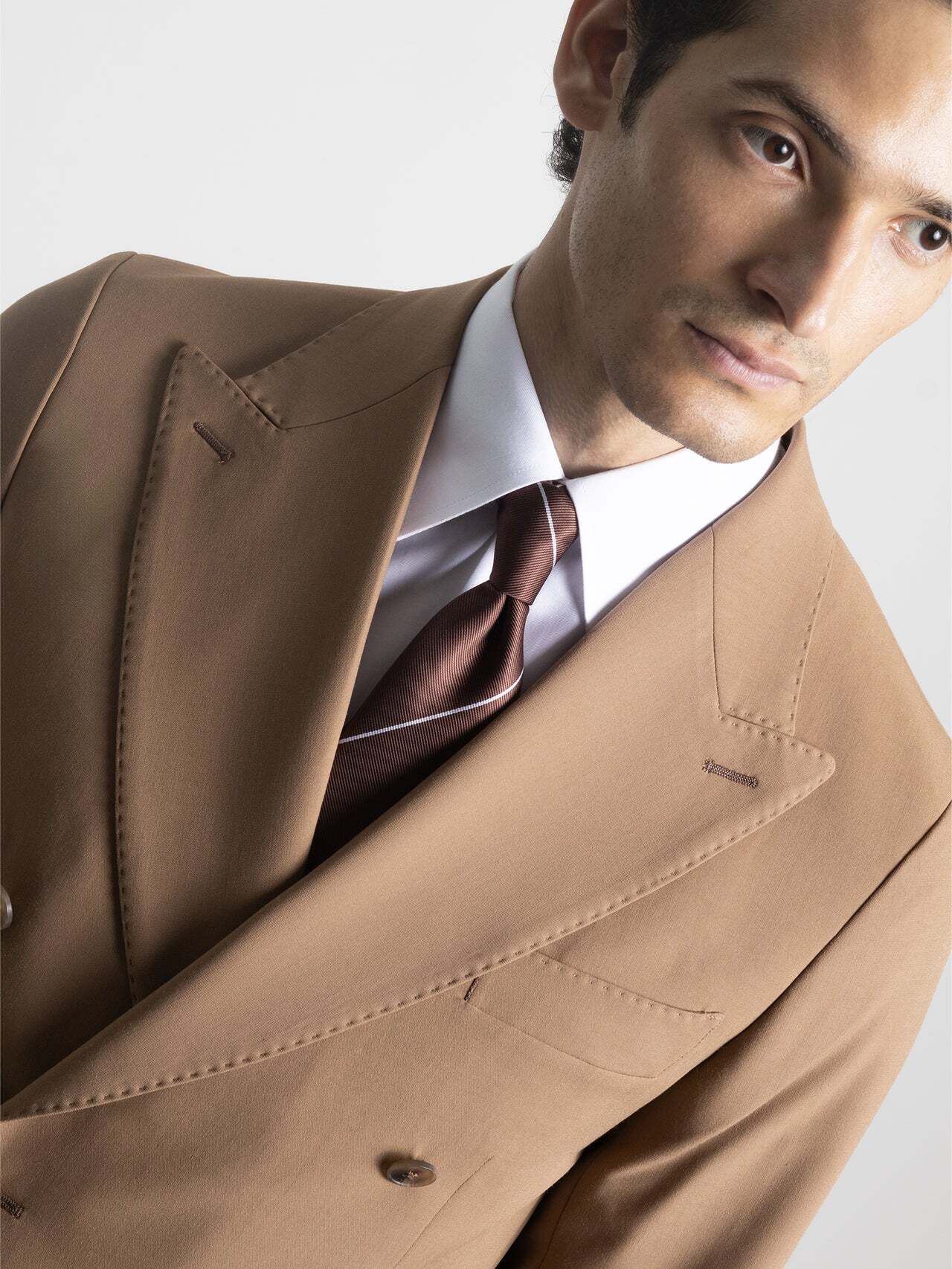 El traje cruzado beige representa la elegancia atemporal con un toque moderno y versátil. Su tono neutro combina con cualquier ocasión, desde eventos formales hasta looks de verano, aportando estilo, frescura y distinción.