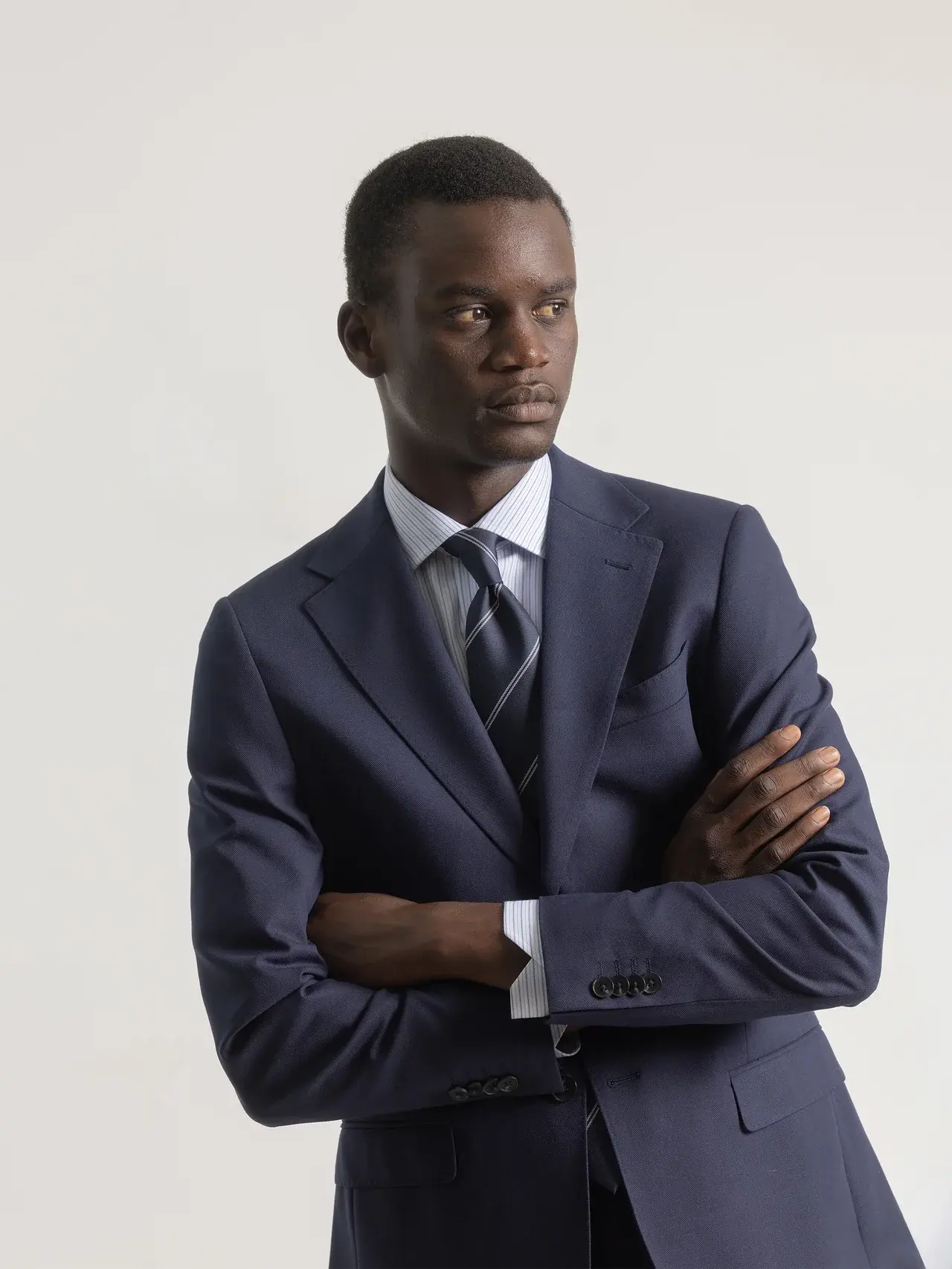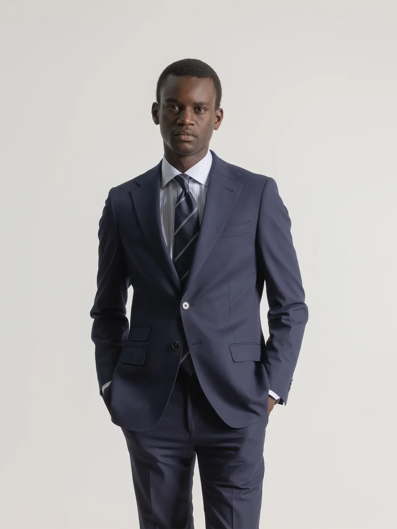El traje micropunto marino destaca por su estilo sofisticado y su textura discreta que aporta distinción. Su color marino profundo y el sutil diseño de micropuntos lo convierten en una elección perfecta para ocasiones elegantes o entornos laborales donde la imagen marca la diferencia.